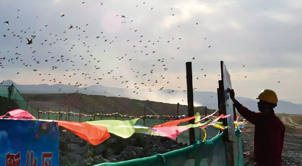 2018年6月25日,為了給粉紅椋鳥營造更加安全的繁殖環(huán)境,中油(新疆)石油工程有限公司圍繞粉紅椋鳥繁殖區(qū)域安裝了約400米保護(hù)圍網(wǎng),并在遠(yuǎn)離繁殖區(qū)設(shè)立了野生動物警示牌和禁鳴喇叭標(biāo)識。這項(xiàng)總投資4.8億元的道路工程,第三次為粉紅椋鳥停工。人與自然和諧共處,堅持可持續(xù)發(fā)展,是央企義不容辭的社會責(zé)任。