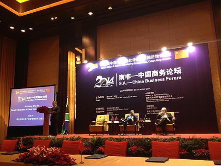 2014年12月5日,國務(wù)院國資委副主任黃淑和應(yīng)邀出席南非貿(mào)工部在京舉辦的“南非—中國商務(wù)論壇”并致辭。南非總統(tǒng)祖馬出席并作主旨發(fā)言。南非駐華大使、貿(mào)工部部長、金磚國家工商理事會中方及南非方代表分別致辭。中南兩國政府和企業(yè)代表出席了該論壇。