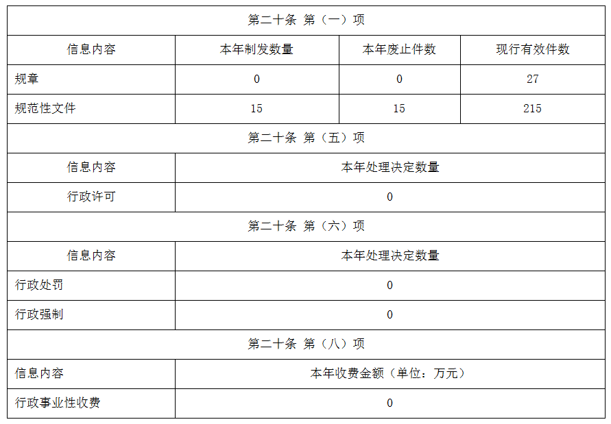 (二)依申請公開情況。全年共收到信息公開申請167件,上年度結轉12件,已按規定辦結165件,結轉下年度辦理14件。已辦結的申請中,予以公開78件、部分公開0件、不予公開30件、無法提供57件、不予處理0件;因信息公開被申請行政復議0件、提起行政訴訟4件。提起的行政訴訟,均為未經復議直接起訴件,其中結果維持3件,尚未審結1件。