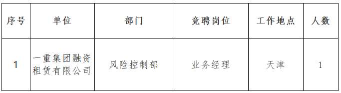 鑒于一重集團融資租賃有限公司經營發展的需要,公司決定,面向社會(集團公司內部員工除外)公開招聘風控崗位人員,相關內容如下: