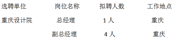 根據改革發展工作需要,集團公司決定在中煤科工重慶設計研究院(集團)有限公司(以下簡稱“重慶設計院”)試點推行職業經理人制度,面向社會市場化選聘經理層成員。現就有關事項公告如下: