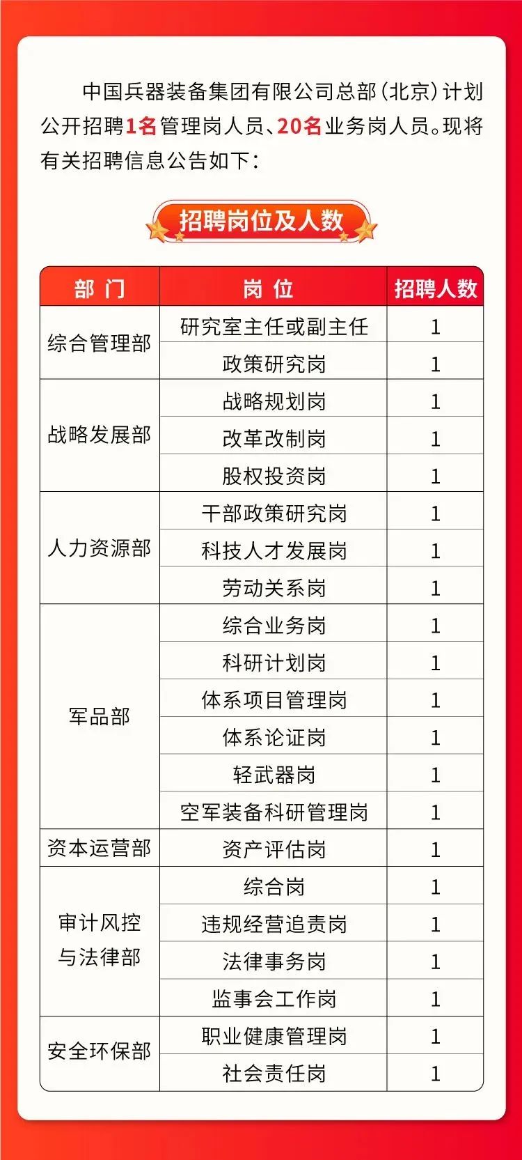 中國(guó)兵器裝備集團(tuán)有限公司總部2022年公開(kāi)招聘報(bào)名鏈接:https://mp.weixin.qq.com/s/RV-5MdR46AUVbv7dImymIg