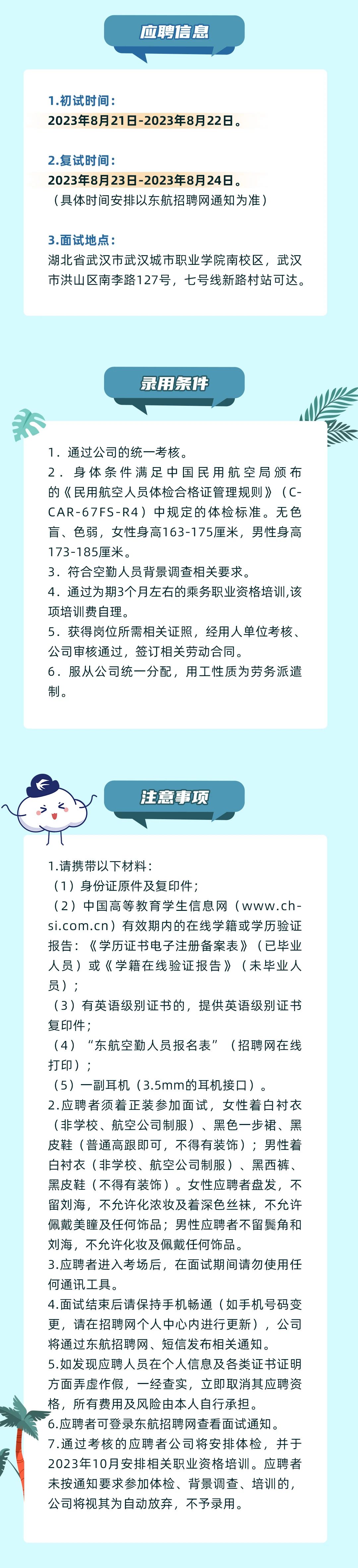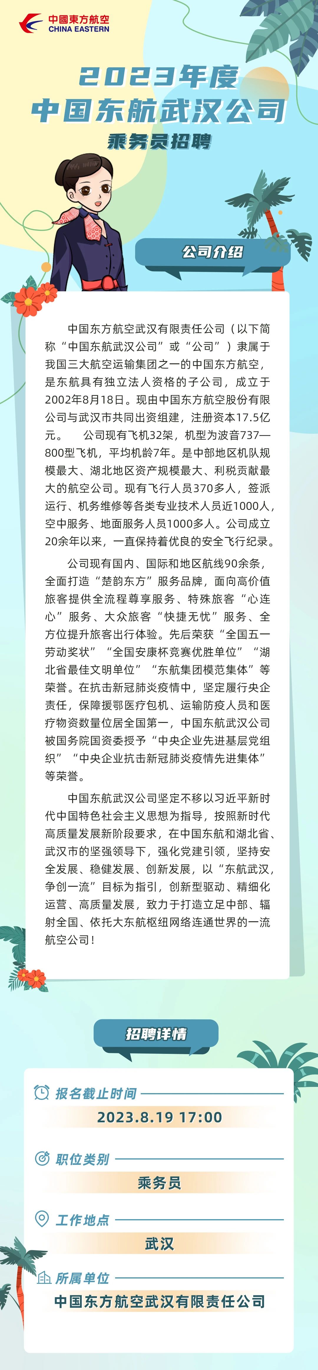 中國東方航空武漢有限責(zé)任公司乘務(wù)員招聘公告
