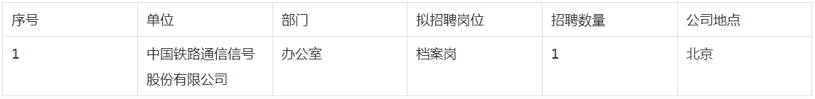 根據(jù)工作需要,現(xiàn)在全社會范圍內(nèi)公開招聘中國鐵路通信信號股份有限公司總部相關(guān)工作人員,具體情況如下: