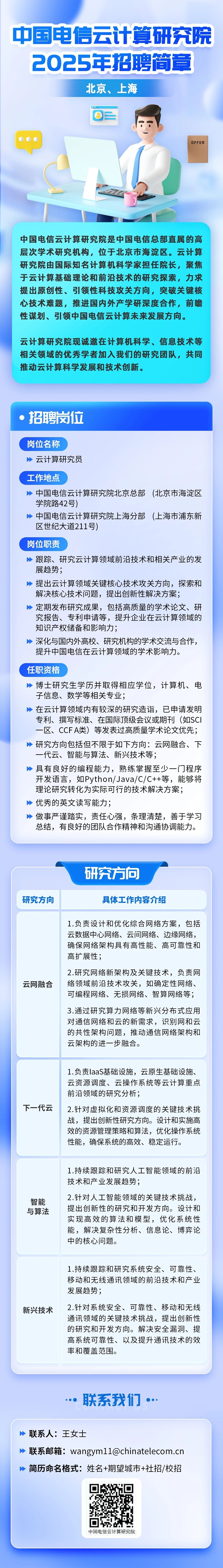 中國(guó)電信云計(jì)算研究院2025招聘公告