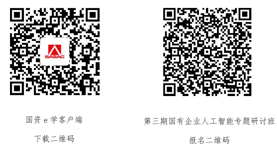 5.獲取培訓(xùn)通知附件及更多信息請(qǐng)掃描下方二維碼下載“國資e學(xué)”手機(jī)客戶端或訪問“國資e學(xué)”網(wǎng)頁elearning.tcsasac.com、關(guān)注“國資委干部教育培訓(xùn)中心”公眾號(hào)。