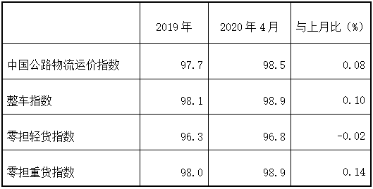 2020年4月份,由中國物流與采購聯合會和林安物流集團聯合調查的中國公路物流運價指數為98.5點,與上月相比基本持平,比去年同期增長0.6%。月內各周指數總體平穩,其中第一、三、四周環比回升,第二周環比回落。