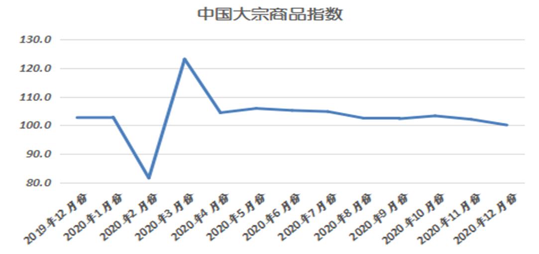 由中國物流與采購聯合會調查、發布的2020年12月份中國大宗商品指數(CBMI)為100.1%,較上月回落2.0個百分點,指數兩連降至近十個月以來的最低。各分項指數中,供應指數、銷售指數、庫存指數均出現回落。從指數的變化情況來看,雖受天氣影響,商品銷售增速有所減緩,但國內經濟強勁復蘇,需求端仍在超常規釋放,加之部分省市環保限產常態化,生產企業年度檢修增多,商品供應量開始減少,供給端壓力有所緩解,市場供需更趨均衡,商品庫存持續下降。展望2021年1月份,市場供需基本面將發生一些變化:在需求端,北方地區更大范圍停工歇業,南方地區趕工期進入尾聲,需求或加速離場,庫存將再度進入上升通道;在供應端,利潤驅使廠家生產積極性不減,疊加部分新增產能釋放,供給不會明顯收縮。整體來看,在消費轉弱預期增強以及庫存重回累庫周期的局面下,國內大宗商品市場上方壓力將逐漸凸顯,但隨著國民經濟持續穩定恢復,促進消費政策不斷發力,制造業持續復蘇,市場底部支撐仍較為穩固。