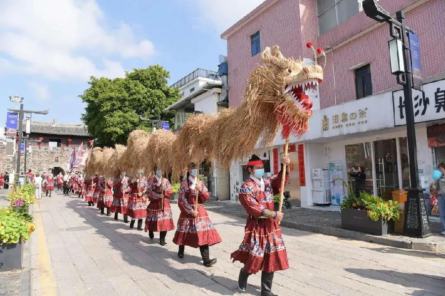 素有“鵬城文化根脈”之稱的深圳大鵬所城民俗文化深厚。春節(jié)期間,大鵬所城帶來“舞草龍”“儺舞”等非遺巡游展演,“舞草龍是南澳漁民極具特色的過年傳統(tǒng)習(xí)俗,也是省級的非遺項目。”大鵬所城相關(guān)負(fù)責(zé)人表示,“為最大程度地呈現(xiàn)好這個項目,今年草龍的扎、舞、送全都由土生土長的當(dāng)?shù)鼐用裢瓿伞N鑴悠饋淼牟蔟垶椴薀舡h(huán)繞、年味十足的大鵬所城增色不少。”