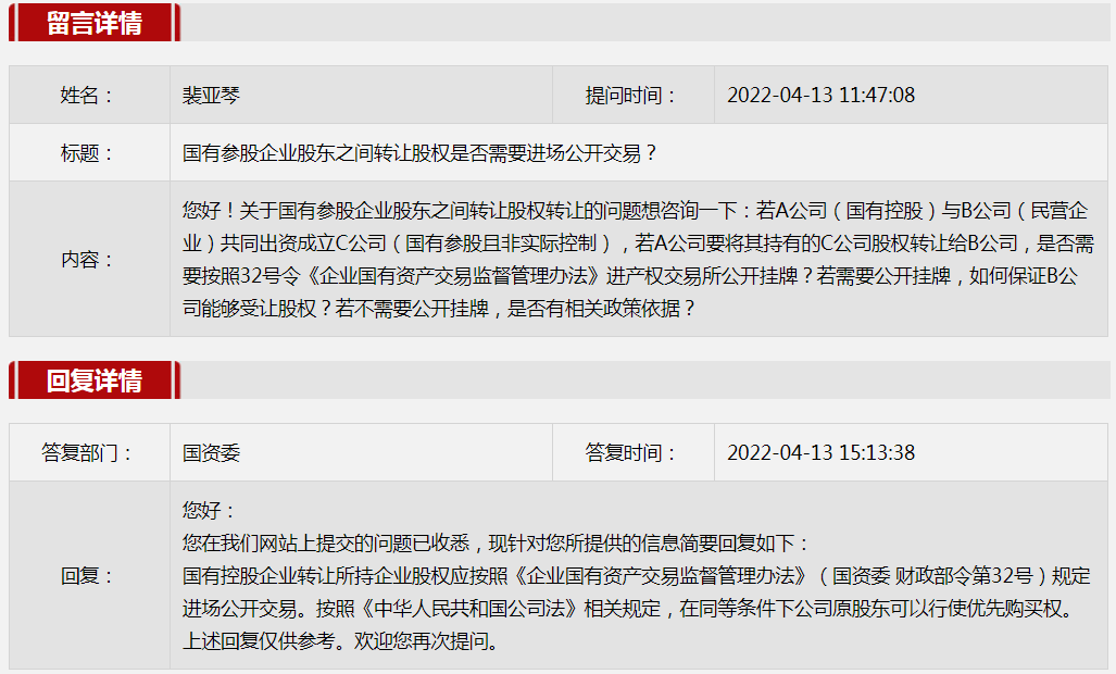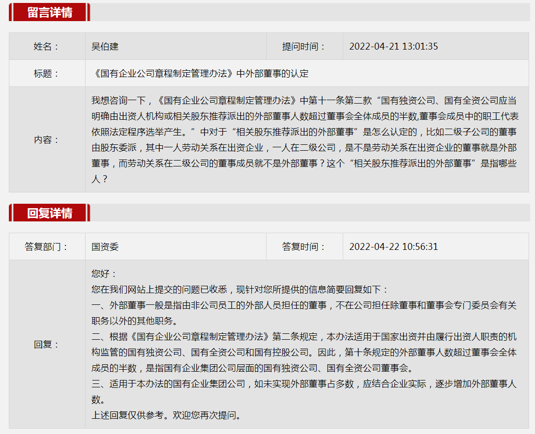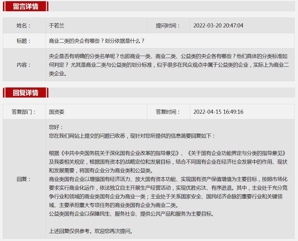 2022年4月國資委網(wǎng)站政務咨詢欄目部分網(wǎng)友提出的咨詢,我們初步做出了認真的回應,現(xiàn)選擇五條關注度高、點擊量高的問題,再次推薦分享。