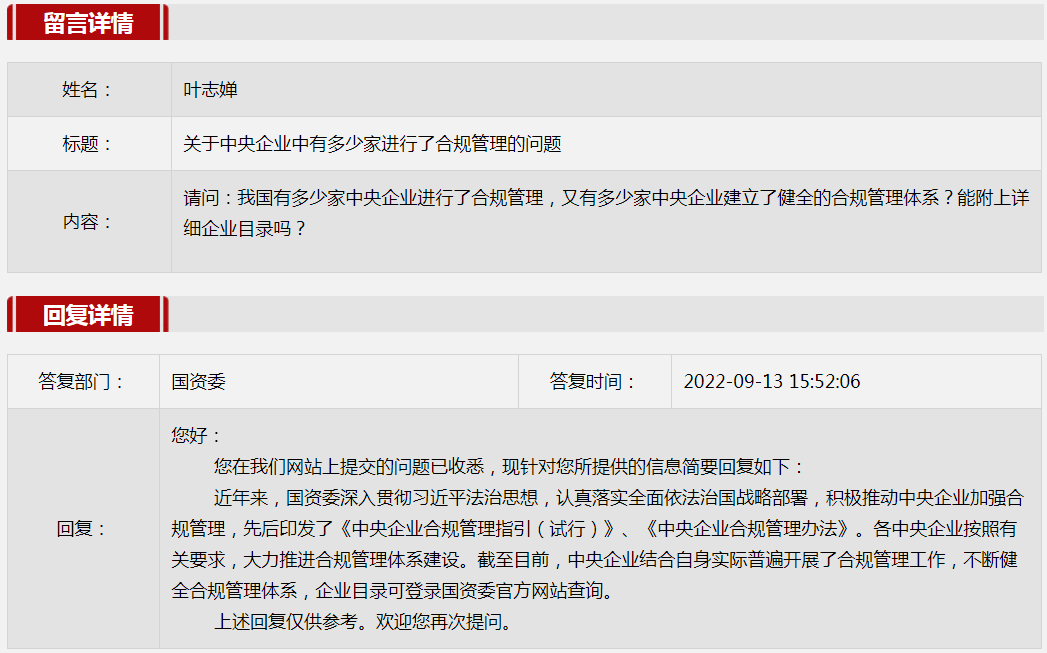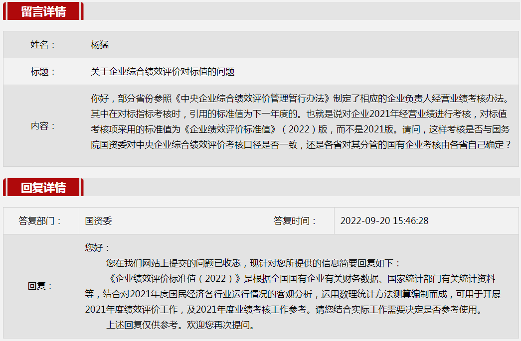 2022年9月國資委網站政務咨詢欄目部分網友提出的咨詢,我們初步做出了認真的回應,現選擇五條關注度高、點擊量高的問題,再次推薦分享。