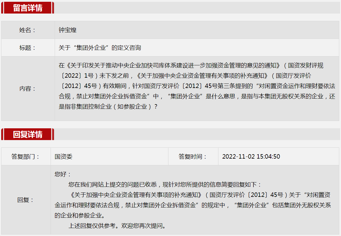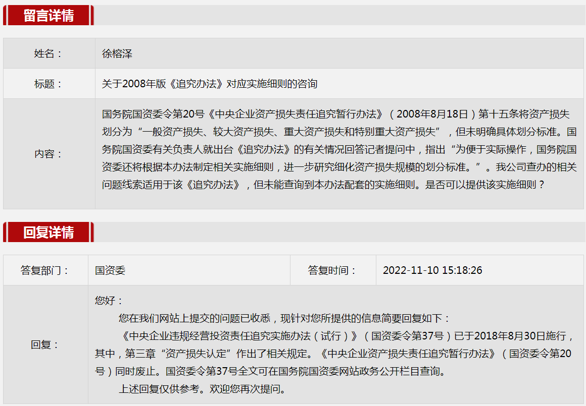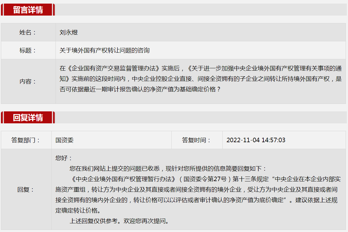 2022年11月國資委網站政務咨詢欄目部分網友提出的咨詢,我們初步做出了認真的回應,現選擇五條關注度高、點擊量高的問題,再次推薦分享。