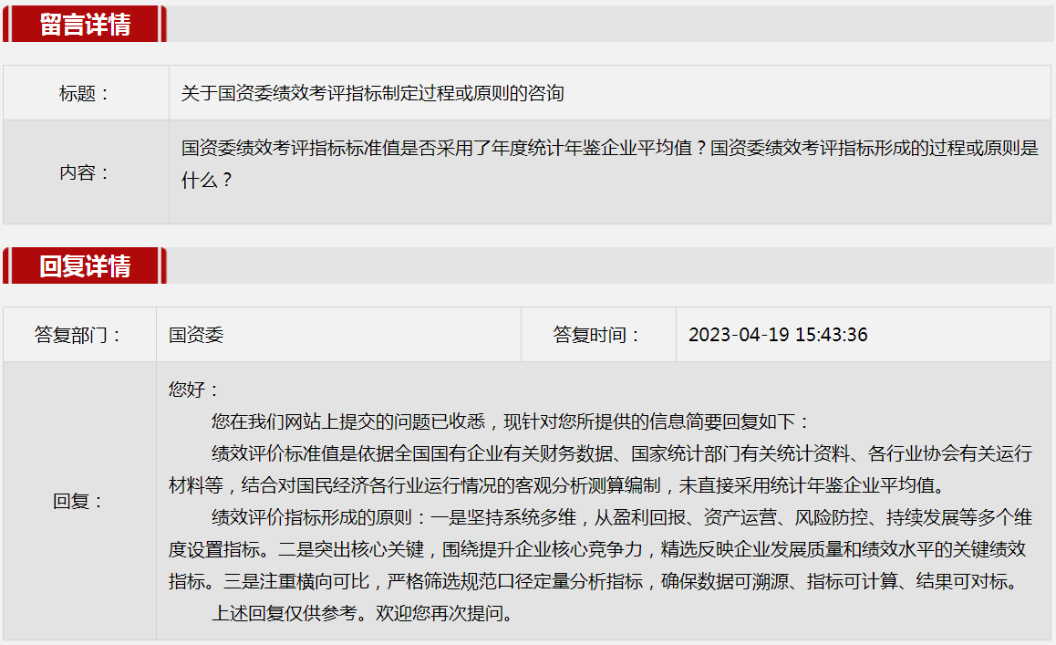 2023年4月國資委網(wǎng)站政務(wù)咨詢欄目部分網(wǎng)友提出的咨詢,我們初步做出了認(rèn)真的回應(yīng),現(xiàn)選擇五條關(guān)注度高、點擊量高的問題,再次推薦分享。