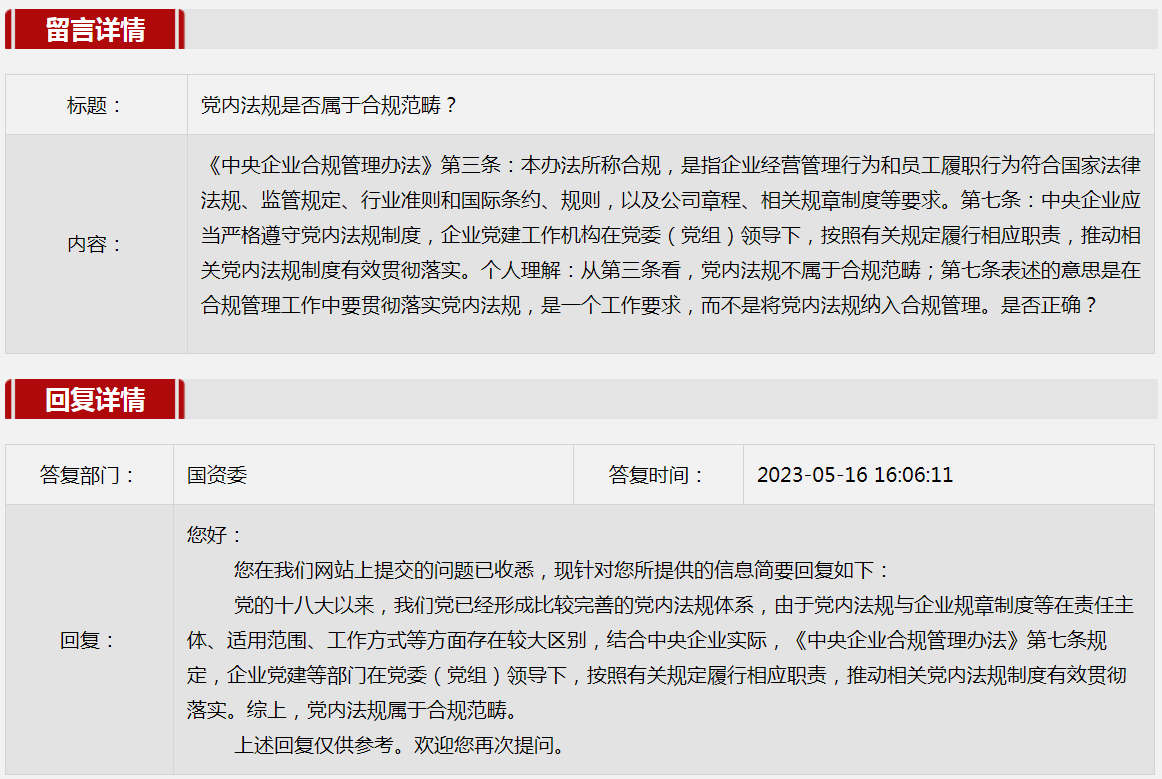 2023年5月國資委網站政務咨詢欄目部分網友提出的咨詢,我們初步做出了認真的回應,現選擇五條關注度高、點擊量高的問題,再次推薦分享。