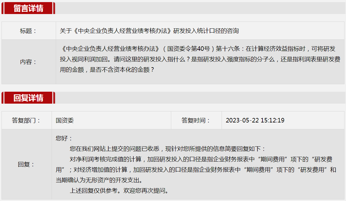 4.關于《中央企業負責人經營業績考核辦法》研發投入統計口徑的咨詢。