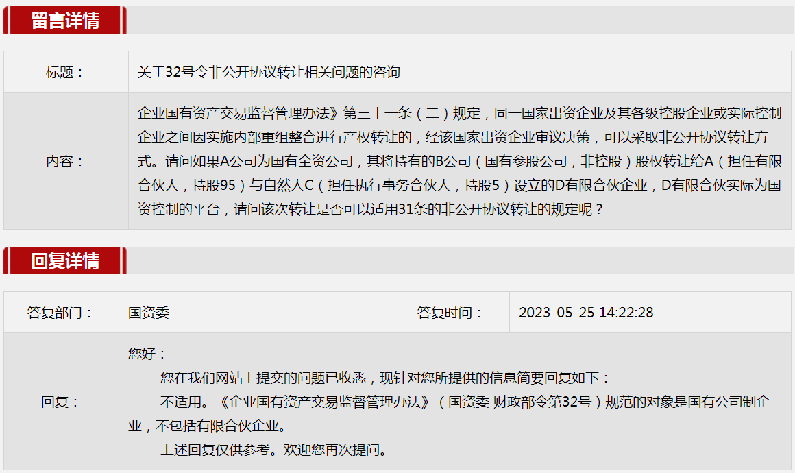 5.關于32號令非公開協議轉讓相關問題的咨詢。