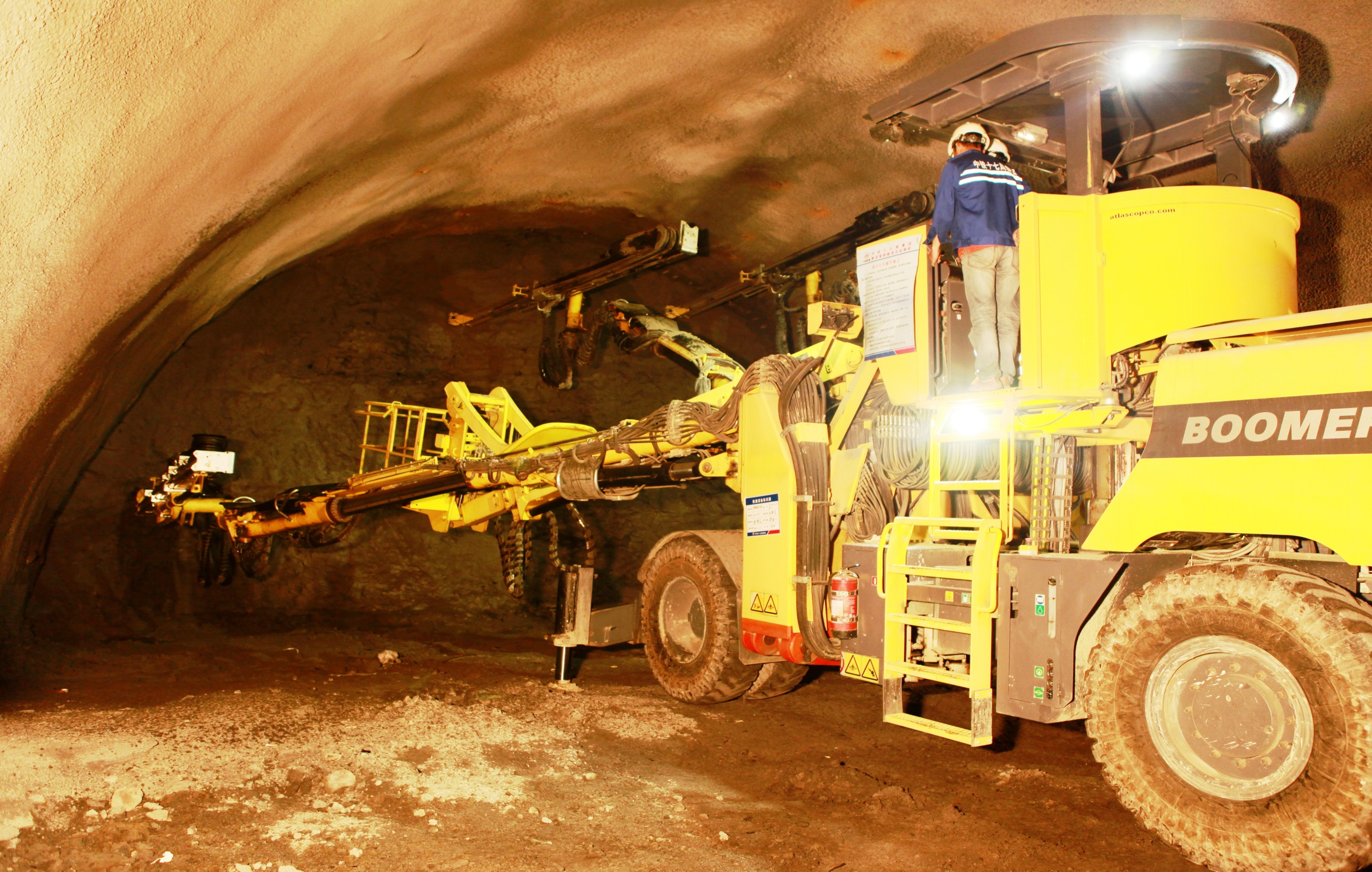 如今,中鐵十七局二公司借助外形酷似“變形金剛”的阿特拉斯全液壓三臂鑿巖臺車提速增效隧道施工,每循環比人工開挖節省時間約1.5小時,新鐵軍借助機械化施工,有效提高了隧道開挖進度,最大程度上降低了隧道內的揚塵,也保障了施工人員的安全。