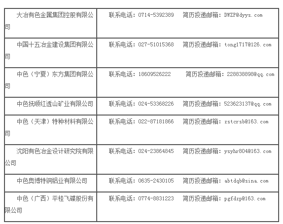 中國有色集團“掘金者”項目、中國有色金屬建設股份有限公司、中色礦業香港控股有限公司、中色國際貿易有限公司、贊比亞中國經濟貿易合作區發展有限公司、鑫誠建設監理咨詢有限公司、中色盧安夏銅業有限公司崗位簡歷投遞方式如下