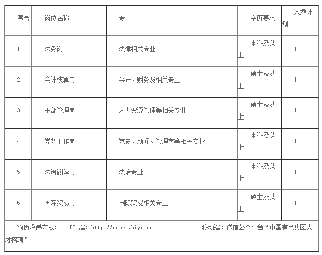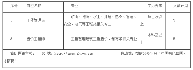 1.中國有色集團招聘官網:http://cnmc.zhiye.com/