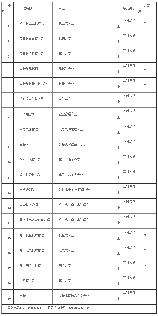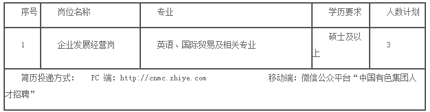 4、認可中國有色集團企業精神和價值觀,愿意為國家的資源安全做出貢獻。符合相關職位任職基本條件。