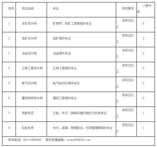 十三、沈陽有色冶金設計研究院有限公司—工作地點:遼寧省沈陽市