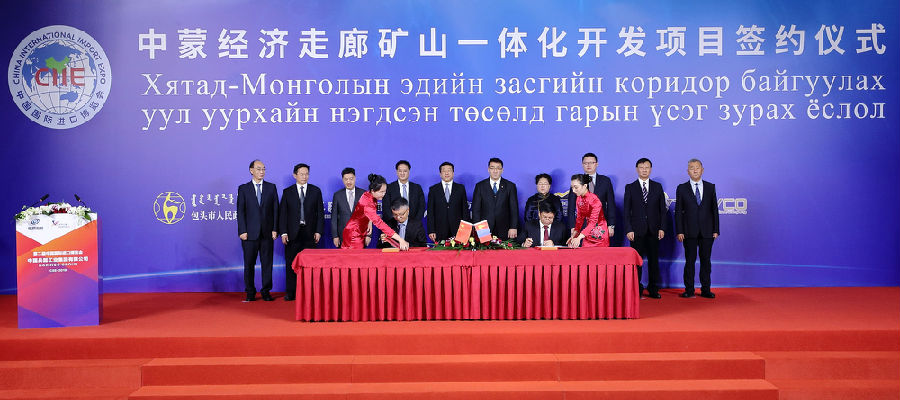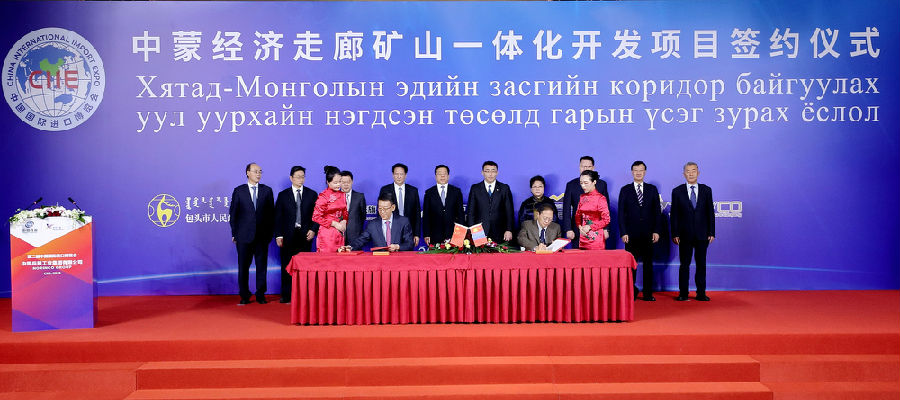 11月4日,第二屆中國國際進口博覽會開幕前,中國兵器工業集團有限公司簽約中蒙經濟走廊礦山一體化項目。