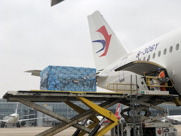 與此同時,來自多個貨源地的物資陸續向著東航物流的綠色通道匯集。首批來自四川的物資在3月12日凌晨即從虹橋轉運抵達東航物流浦東機場北貨站,至3月12日下午,其他方面過來的物資陸續運抵浦東,迅速完成打板、裝載工作。