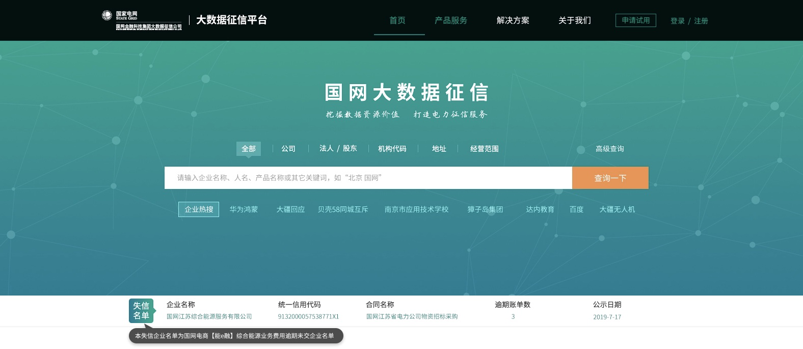 國網(wǎng)電商大數(shù)據(jù)征信平臺界面。國網(wǎng)電商公司/供圖