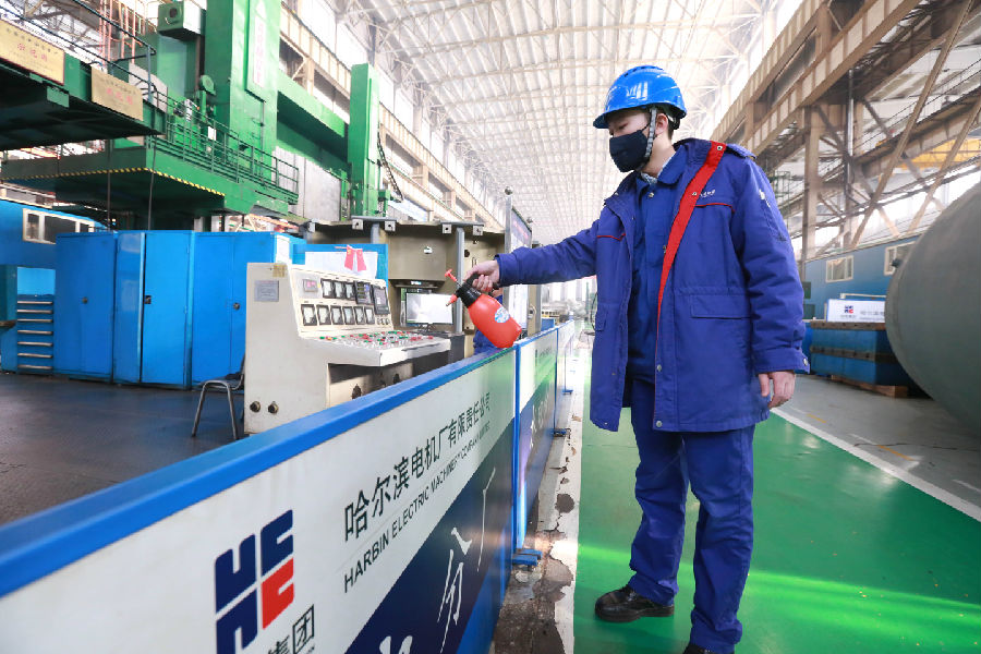 哈電集團科學判斷形勢、精準把握疫情,提前制定復工復產方案,在全面做好疫情防控的前提下,1月27日生產企業按照生產計劃節日期間加班生產作業;1月30日國際工程人員全部返崗工作,并派出20余名營銷人員開展國際市場開發業務;2月3日至2月9日在加班生產的基礎上開始逐步復工復產;2月10日開始有序推進全面復工復產。