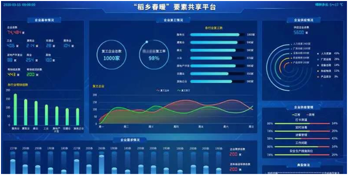 “稻鄉春暖”要素共享平臺是基于城市數據湖,結合政府提供企業信息、互聯網數據等,實現企業信息全面整合和全要素查詢,構建企業信息圖譜,精準掌握企業需求,實現企業供需資源智能化匹配,打通產業鏈上下游信息“孤島”,并運用“區塊鏈”技術,保證企業信息、供需信息數據安全,輔助政府綜合研判信息匹配情況,“一企一策”精準服務,在降低區域人員流動、減少疫情影響的前提下,實現資源配置的最大化。目前,針對天津市津南區復工需求,該公司快速開發的“稻鄉春暖”要素共享平臺在上線第一天,已注冊企業215家,第二天達443家,截至目前,平臺已收錄全區共7.6萬家企業,其中,1095家規上企業,407家工業企業,215家建筑業企業,1007家商業、服務業企業,極大助力天津市重點行業復產復工。通過“稻鄉春暖”平臺實時數據報送,津南區可實現廠房出租、設備出租、人力資源、原材料和產品庫存等企業供求信息的動態共享,打通區內企業產業鏈上下游信息壁壘,實現生產各要素的科學合理配置,提高資源利用率,促進津南優勢產業鏈生態體系的形成,助力政府全面掌握企業復工復產經營情況,實現精準施策。