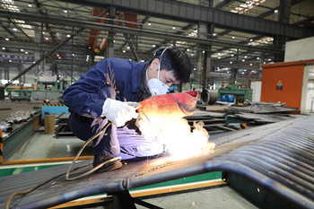 全國勞動模范、黨員黃榮洪拿上焊槍,又一次帶頭全力推進相關重點項目。