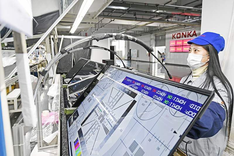 安徽康佳彩電生產(chǎn)線人員在對(duì)彩電進(jìn)行調(diào)試