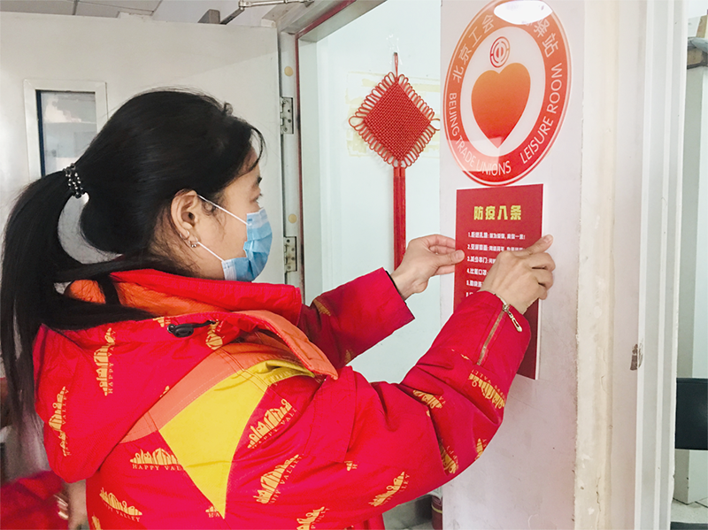 華僑城集團(tuán)旗下歡樂(lè)谷旅游景區(qū)員工正在辦公區(qū)張貼疫情防控宣傳標(biāo)語(yǔ)