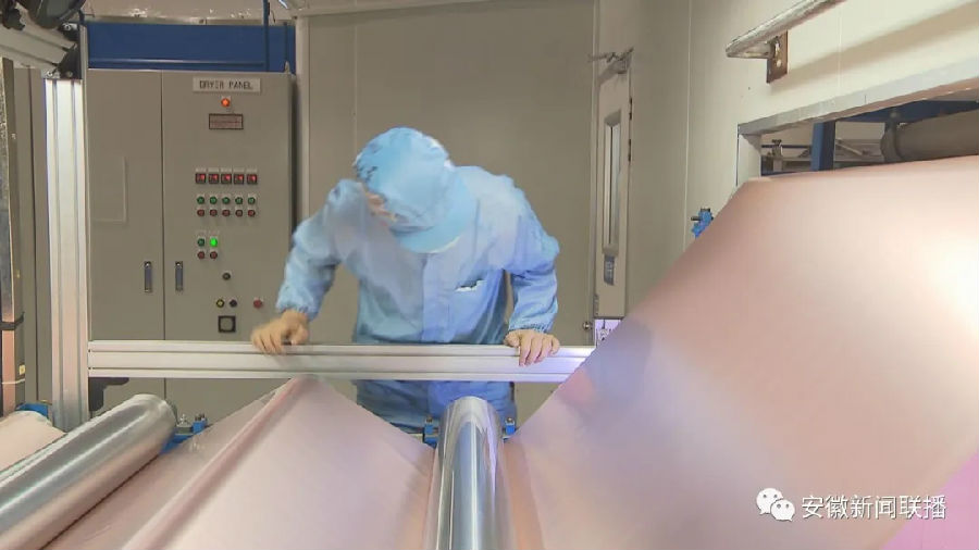 在安徽銅冠銅箔有限公司的生產車間,這里正在生產的是企業最新開發的一代反轉銅箔產品,這種銅箔它可以大幅度的減少高頻電路信號傳送中的信號損失,目前主要是用在5G通訊領域,現在每個月都有上百噸的銅箔產品從這里運往全國各地。