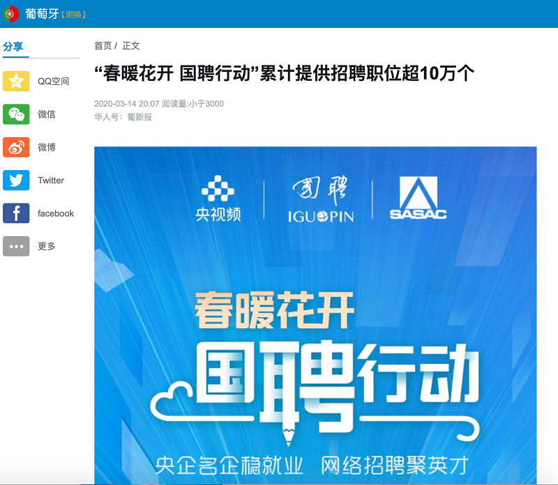 《葡新報》報道(客戶端、推特賬號、臉書賬號)