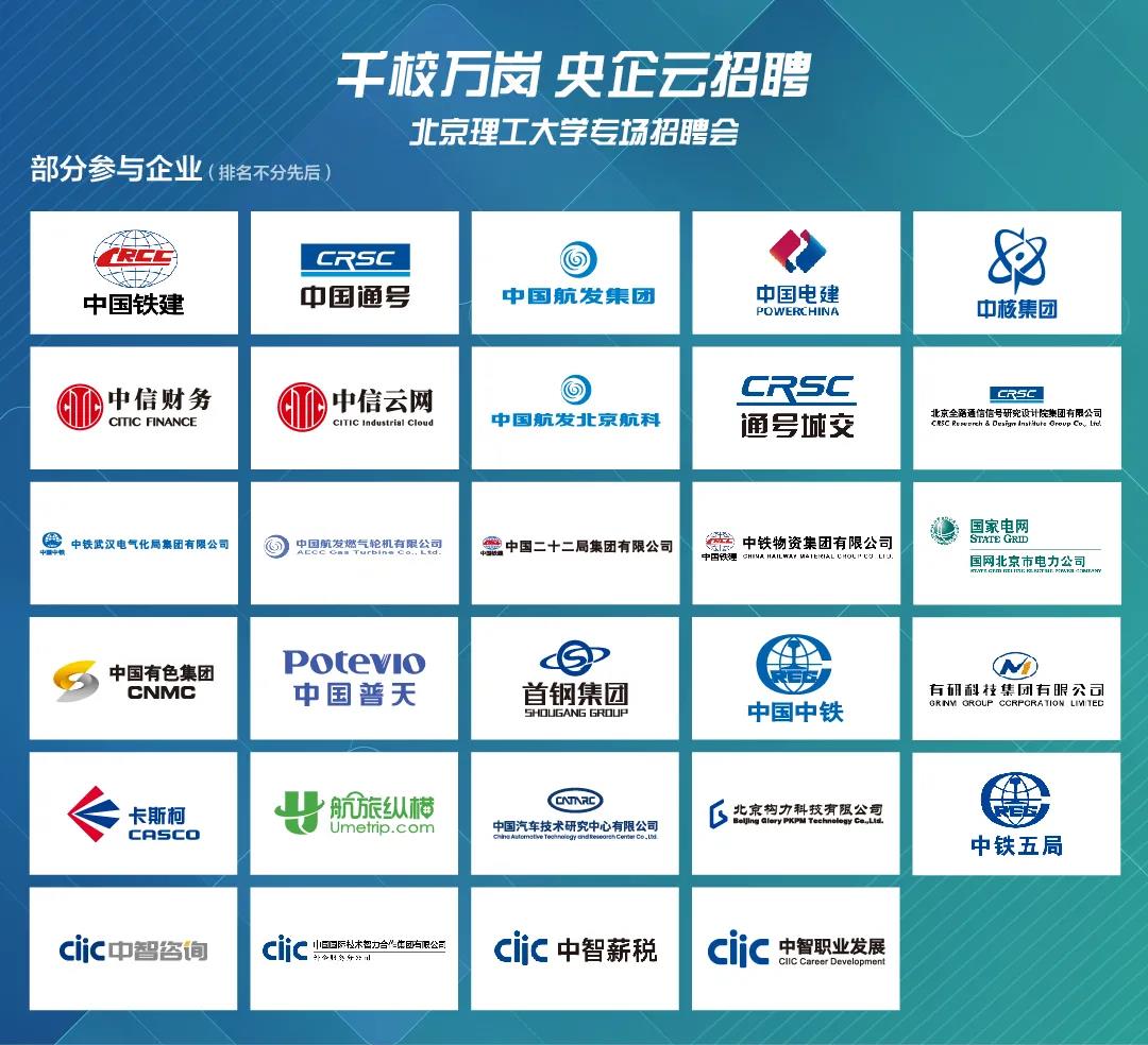 “千校萬崗·央企云招聘”北理工專場參與集團企業
