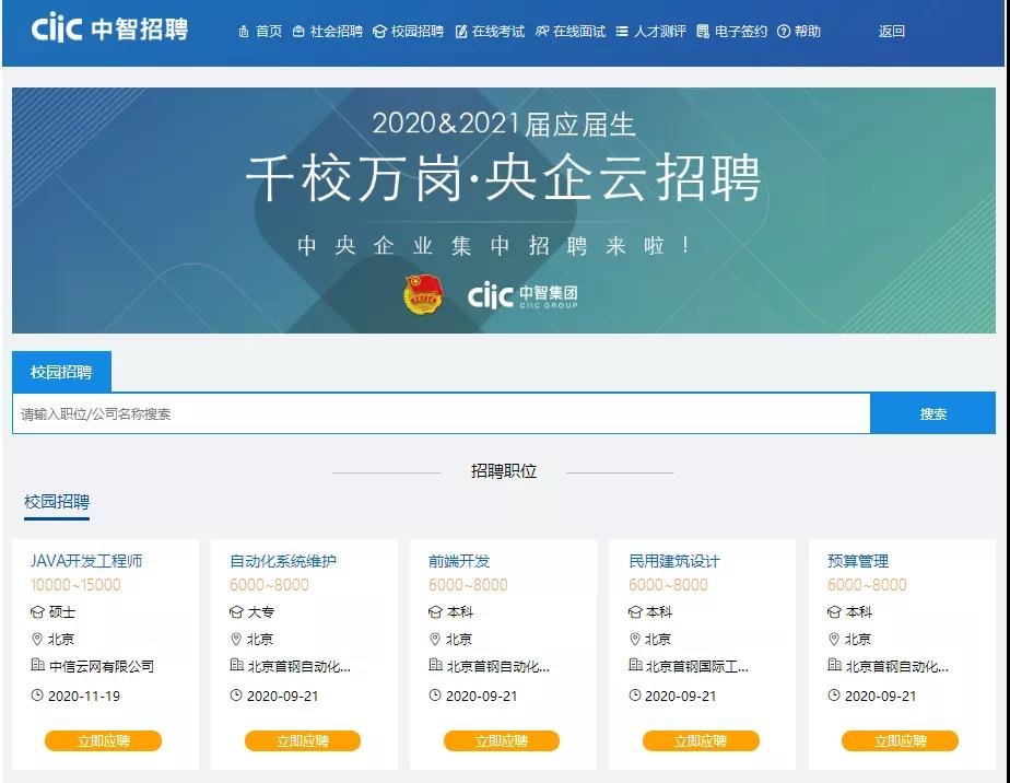 中智招聘網“千校萬崗·央企云招聘” 活動專場