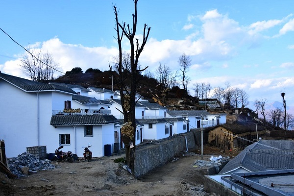 為了能讓貧困群眾都能住上安全住房,杜光遠和其他駐村工作隊員到村里以后,多次上門挨家挨戶動員百姓建新房。在調研中了解到,像阿色木日這樣的家庭,古恩村還有7戶。脫貧路上,盡力不能讓一戶百姓掉隊!杜光遠迅速向華電金上公司匯報,在與地方政府協商一致的基礎上,由華電金上公司出資30萬元,聘請建房師傅帶領這些貧困群眾一起建起了彝家新寨。就這樣,政府出大頭、公司幫一把、群眾齊出力,2019年11月彝族新年前夕,新房落成了,阿色木日終于搬進了新房。