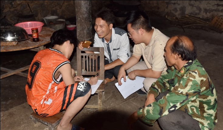 中國大唐扶貧干部到貧困戶家里宣傳國家政策。