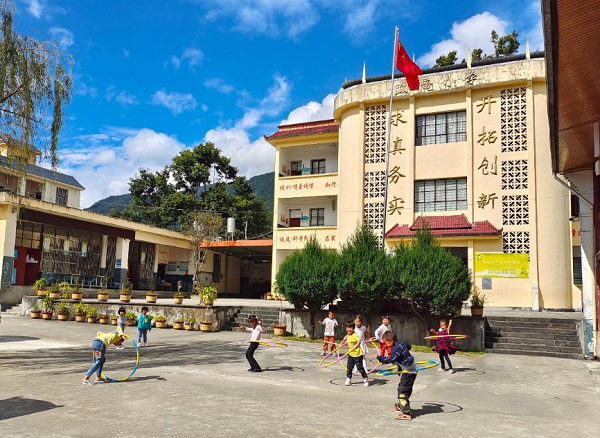 從梁河縣城到小廠鄉勐竜村,一路云霧繚繞、百轉千回,這座“世外桃源”地處高寒深山、交通閉塞。勐竜小學校長楊明浩介紹到:“勐竜村較為偏遠、相對獨立,因此這所小學能夠覆蓋到的學生并不算多,但這卻是村里孩子能接受教育的唯一窗口。”2004年,中國有色集團為勐竜小學幫扶建設了教學樓。這也是公司在梁河幫扶建設的第一座教學樓,如今,這座教學樓的援建標識牌上記錄的還是公司時用名“中國有色建設集團有限公司”。變的是稱謂,不變的是傾情幫扶,五年后的2010年,中國有色集團再次捐資幫助購買教學設備,并于2014年繼續幫扶,建成了學生宿舍和圍墻。