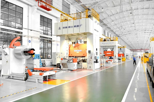 在東方電機沖剪車間里,多臺上百噸的沖床正聯動進行著1800次/小時的快速節拍運動,同時將約50個5噸重的大鋼卷在數分鐘內變成一張張形狀各異的小鋼片。