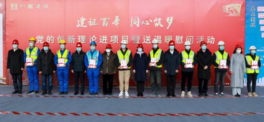 1月22日,中建集團在中建二局國家會議中心二期(配套)項目開展“建證百年 同心筑夢”黨的創新理論進項目暨送溫暖慰問活動,求是雜志社、國務院國資委、中國海員建設工會、中建集團相關負責人等出席活動,為項目黨員、農民工黨員贈送《求是》雜志并交流學習心得。
