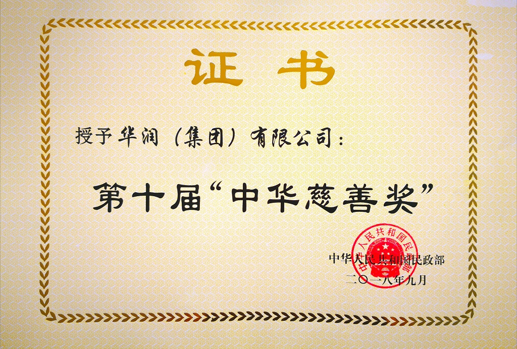 2018年9月13日,在由民政部舉辦的第十屆“中華慈善獎”表彰大會上,華潤集團榮獲第十屆“中華慈善獎”捐贈企業殊榮。“中華慈善獎”每兩年評選表彰一次,是中國公益慈善領域中的最高政府獎。