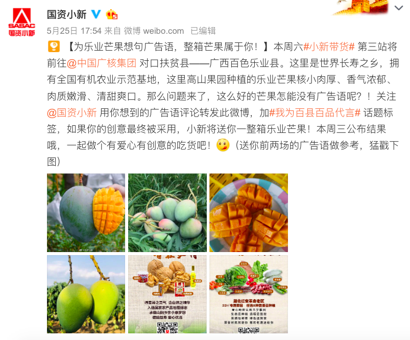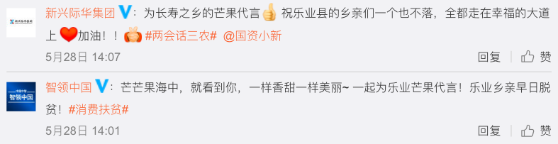 同時,眾多中央企業也紛紛為樂業芒果打call——