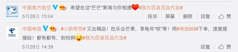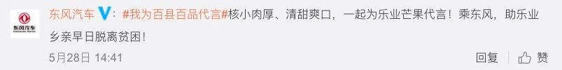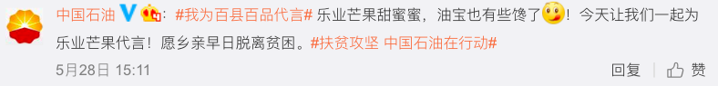 航天科工、兵器工業集團、中國石油、中國石化、國家電網、中國大唐、中國華電、國家電投、國家能源集團、中國電信、東風汽車、東方電氣、東方航空、南方航空、中糧集團、中智集團、中國中車、中國中鐵、中國鐵建、中國交建、中國煤炭地質總局、新興際華集團、中廣核、中國生物等眾多企業轉發互動,為樂業芒果帶貨助力。