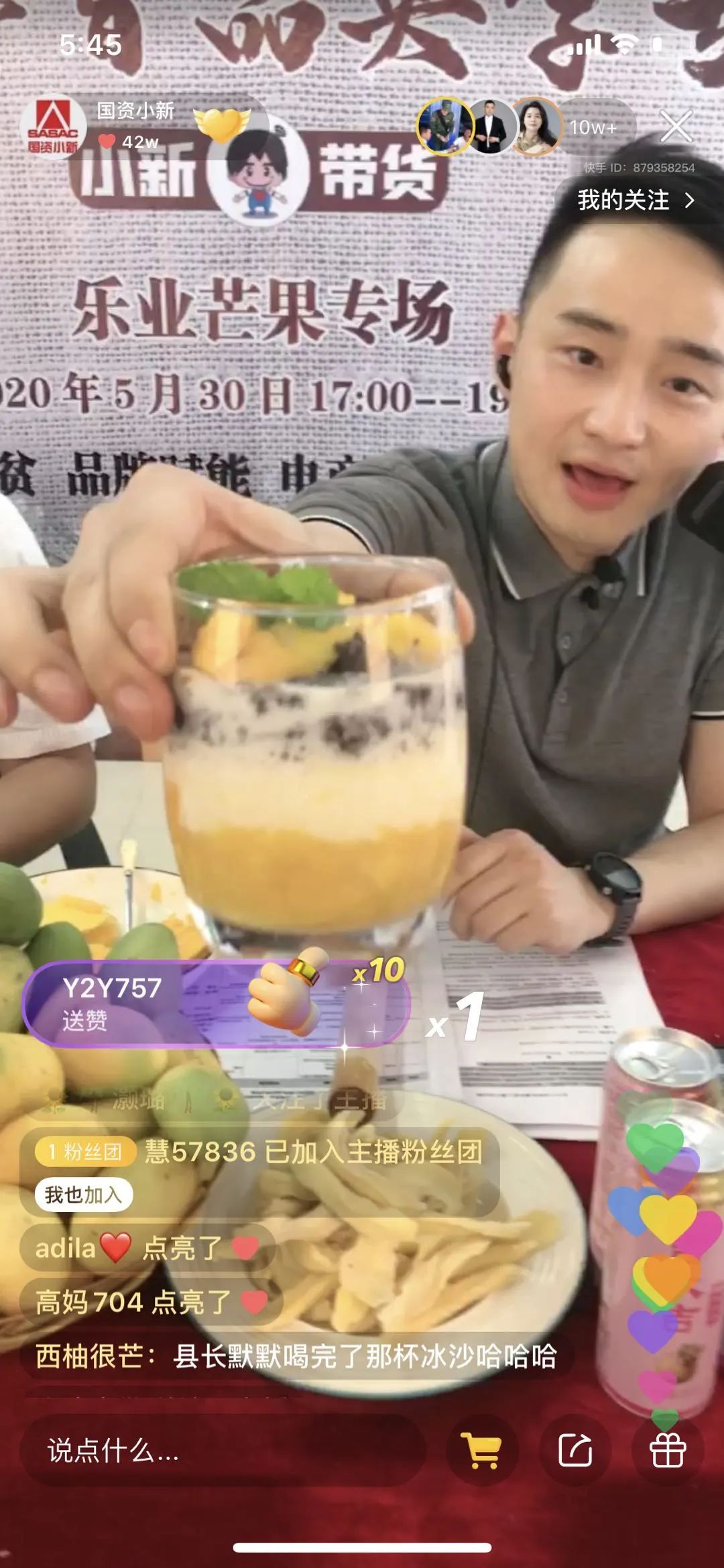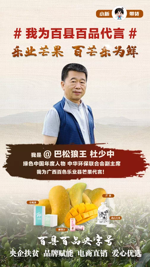 直播中,樂業芒果的公益代言人——綠色中國年度人物,中華環保聯合會副主席杜少中老師與小新連線,化身扶貧大使,呼吁網友們愛心助農,得到大家積極呼應。