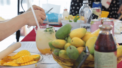 由百色芒果、蘇打水、酸奶調配芒果飲料,冰爽又鮮美;