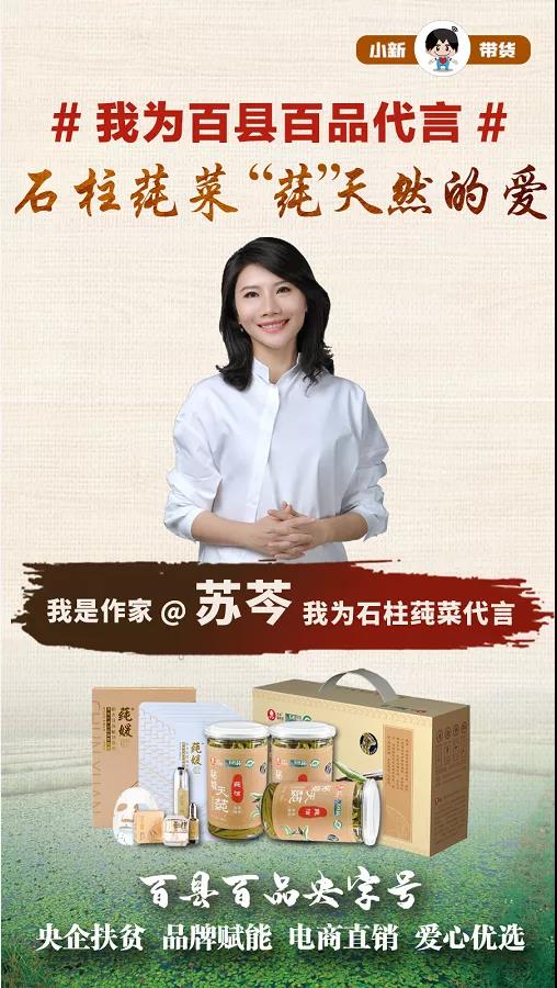 直播間還有一位大咖現場連線,她就是石柱莼菜的網絡公益代言人,著名作家@蘇芩。