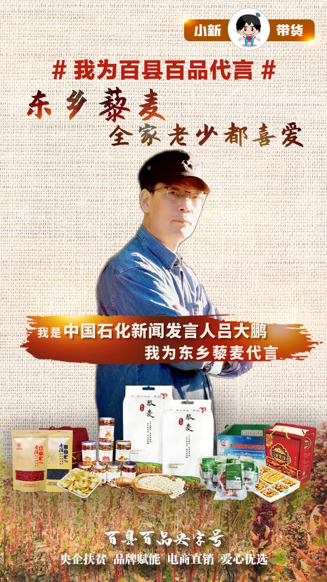 直播間,小新將與中國石化幫扶東鄉(xiāng)脫貧攻堅(jiān)小組聯(lián)袂出鏡直播,帶貨東鄉(xiāng)藜麥等當(dāng)?shù)靥厣r(nóng)產(chǎn)品。