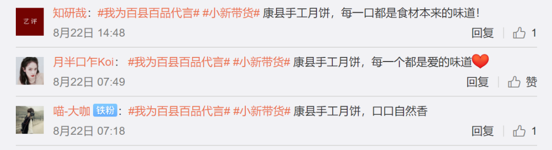 8月21日起,小新全網征集康縣手工月餅廣告語,為康縣手工月餅等當地特產品牌賦能。廣大網友積極響應,獻智慧更獻愛心。